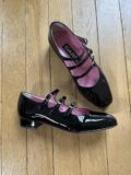 Babies Carel en cuir verni noir modèle Ariana à trois brides et petits talons. Pointure 35,5 italien (convient 36 français). Excellent état.