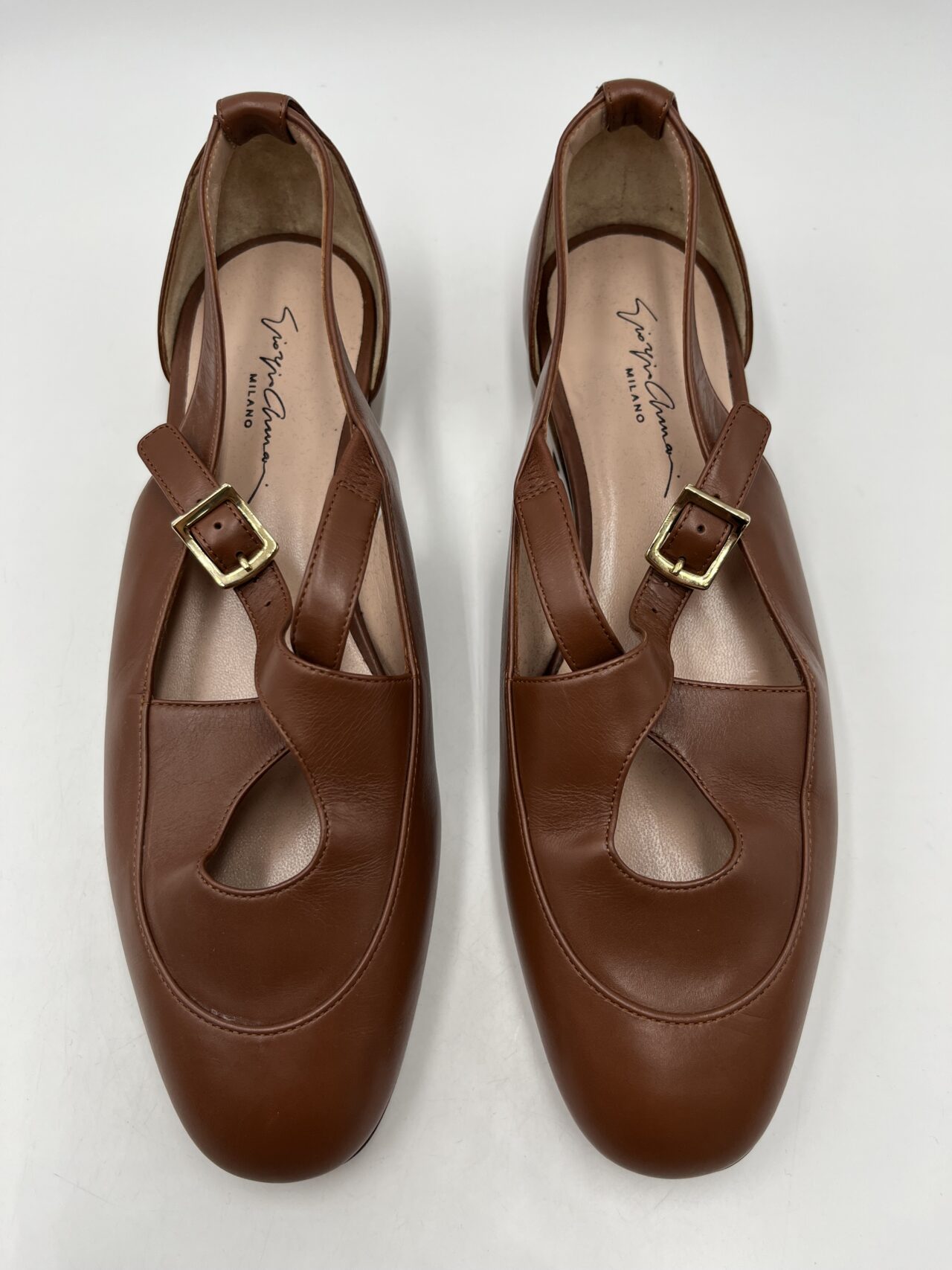 Babies Giorgio Armani en cuir marron à lanières croisées et ajourées sur les côtés. Pointure 36 italien (convient 36,5 français). Neuves.