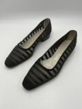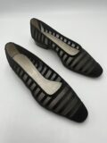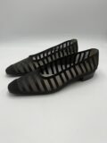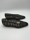 Ballerines Giorgio Armani plates en résille et satin noirs, ajourées sur les pieds. Pointure 38 italien (convient 38,5 français).