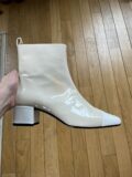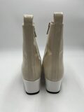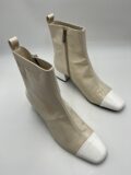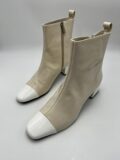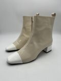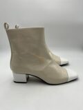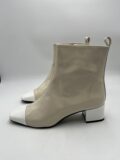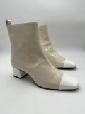 Bottines Carel modèle Estime en cuir verni beige et blanc à petits talons. Pointure 38,5 italien (convient 39 français). Neuves (à noter une légère coloration sur une des bottines, assez peu visible).