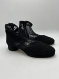 Bottines vintage Charles Jourdan en résille et daim noirs. Pointure 8 (convient 37,5/38). Excellent état.