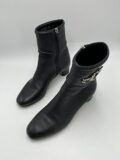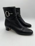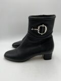 Bottines Gucci en cuir grainé noir à boucles argentés et à petits talons. Pointure 36 italien (convient 36,5 français). Excellent état, quasiment neuves.