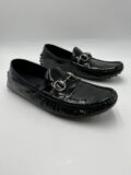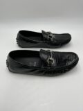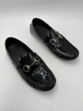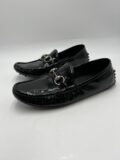 Mocassins Gucci en verni noir à mors argentés et à picots. Pointure 36,5 italien (convient 37 français). Très bon état.