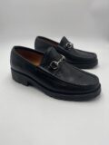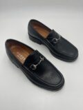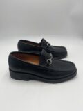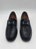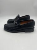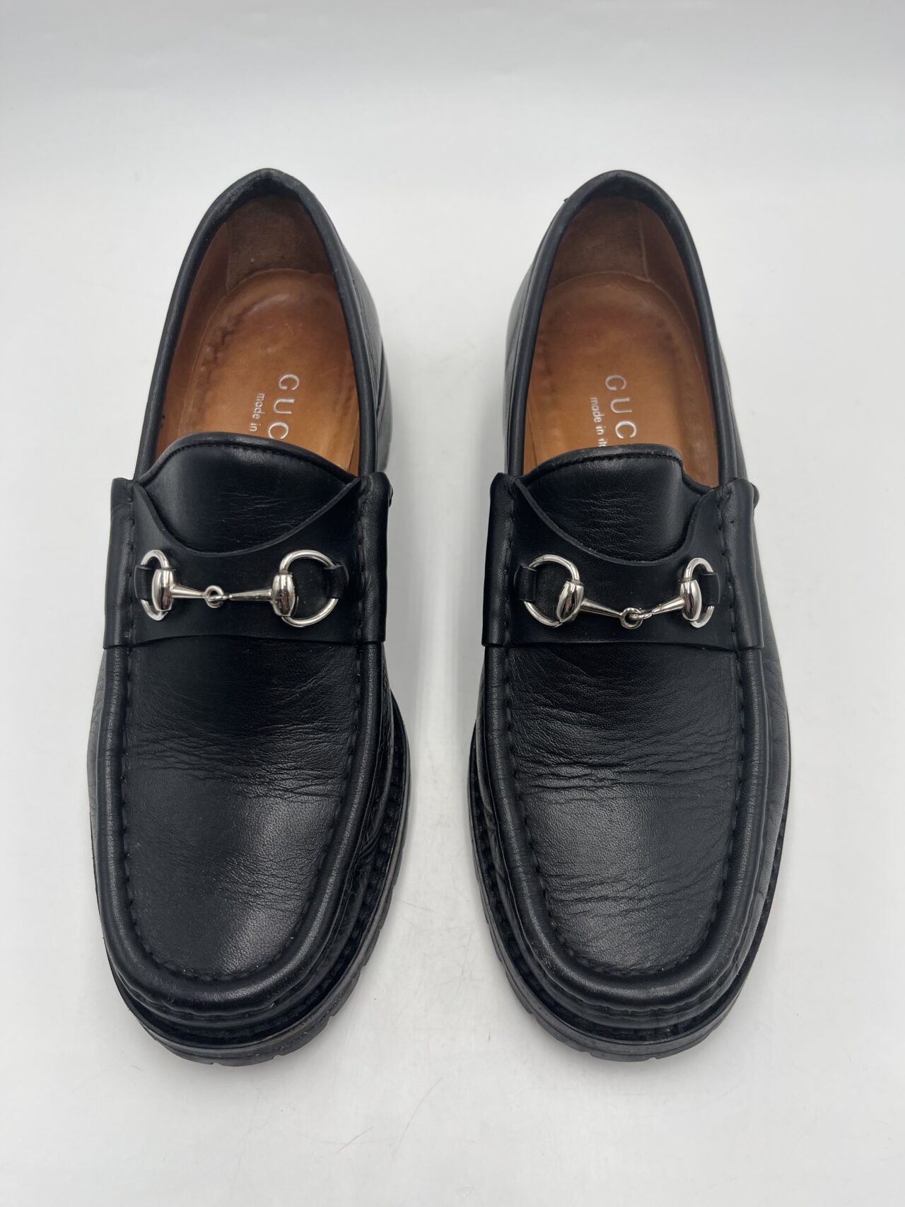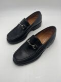 Mocassins Gucci en cuir noir à mors argentés et à semelles crantées. Pointure 36,5 (convient 36,5/37 français). Excellent état.