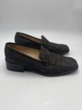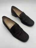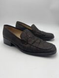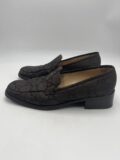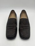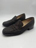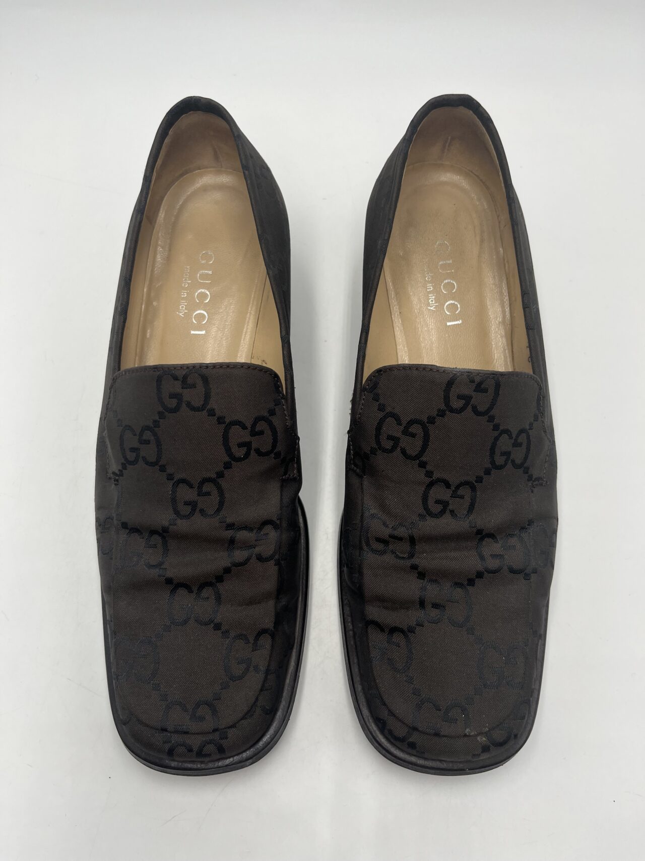 Mocassins Gucci en toile monogrammée marron à bouts carrés. Pointure 37,5 italien (convient 37,5/38 français). Très bon état.