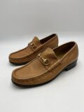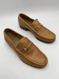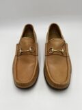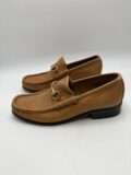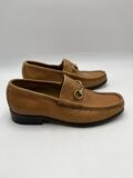 Mocassins Gucci modèle Horsebit 1953 en cuir camel/gold à mors dorés. Pointure 37. Très bon état général.