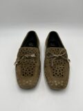 Mocassins Roger Vivier en daim marron kaki ajouré à petits noeuds. Pointure 36 (peut convenir 36,5). Très bon état.