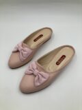 Mules Carel plates à gros noeuds en cuir rose modèle Marquis. Pointure inscrite 5,5 mais convient 35,5. Neuves (à noter une légère tâche sur le bout avant droit).