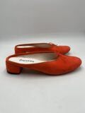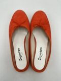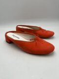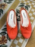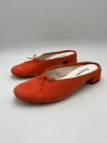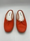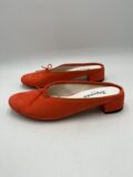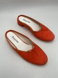 Mules Repetto en daim orange foncé à petits noeuds. Pointure inscrite 38,5 mais correspond à un 37,5/38. Neuves, dans leur boite d’origine.