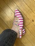 Slingbacks Carel modèle Pêche en toile rayée rose et bordeaux. Pointure 36. Très bon état, dans leur boite d’origine.