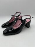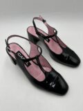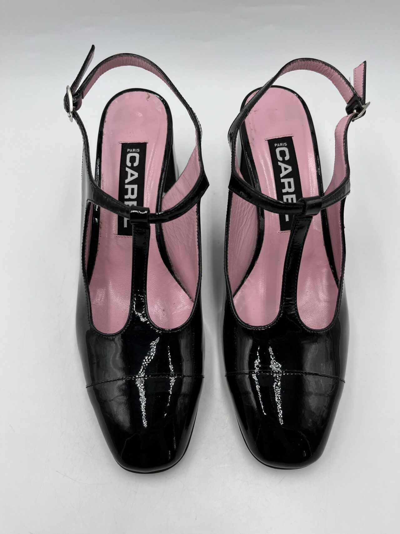 Slingbacks / salomés Carel à talons en cuir verni noir. Pointure 38,5. Excellent état.